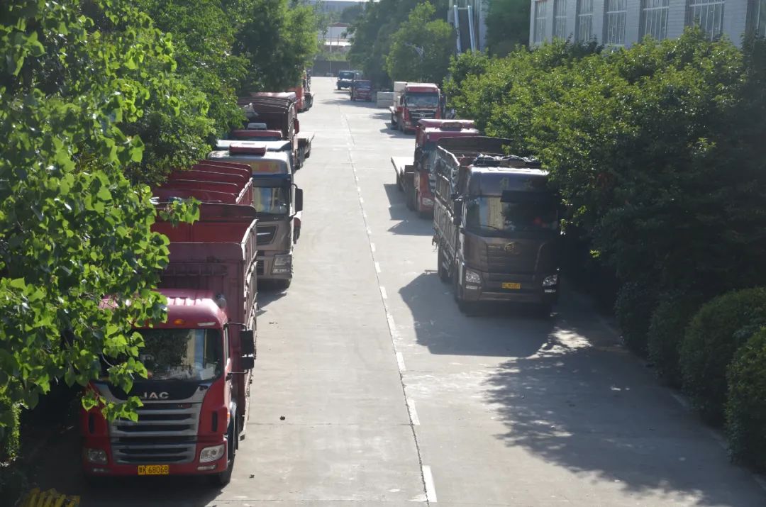物流發(fā)運(yùn)中心的貨車臨時(shí)停靠區(qū),一輛輛等待裝車的貨車,時(shí)刻準(zhǔn)備著執(zhí)行更艱巨的任務(wù)。