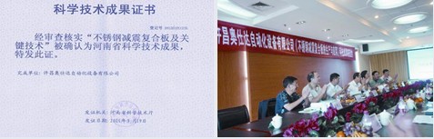 9月19日,公司不銹鋼減震復合板項目順利取得了省科技廳頒發(fā)的科技成果鑒定證書。至此,公司打破了國內(nèi)不能生產(chǎn)不銹鋼減震復合板的局面,填補了國內(nèi)行業(yè)空白。