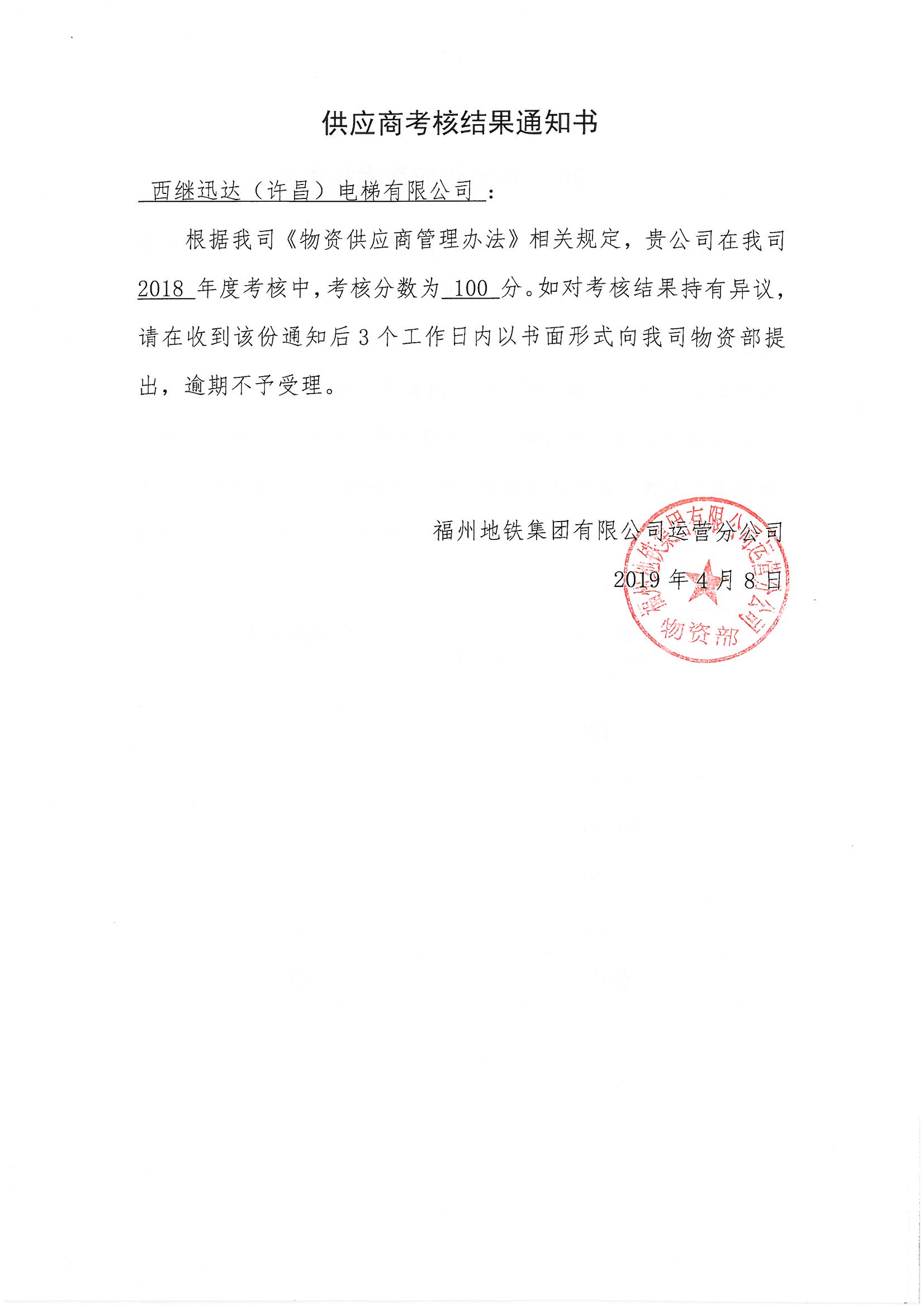 福州地鐵給予西繼迅達(dá)高度認(rèn)可