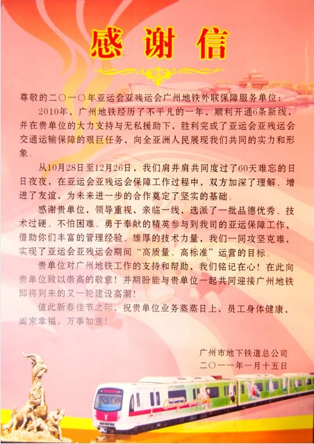公司榮獲亞運會保障工作先進集體