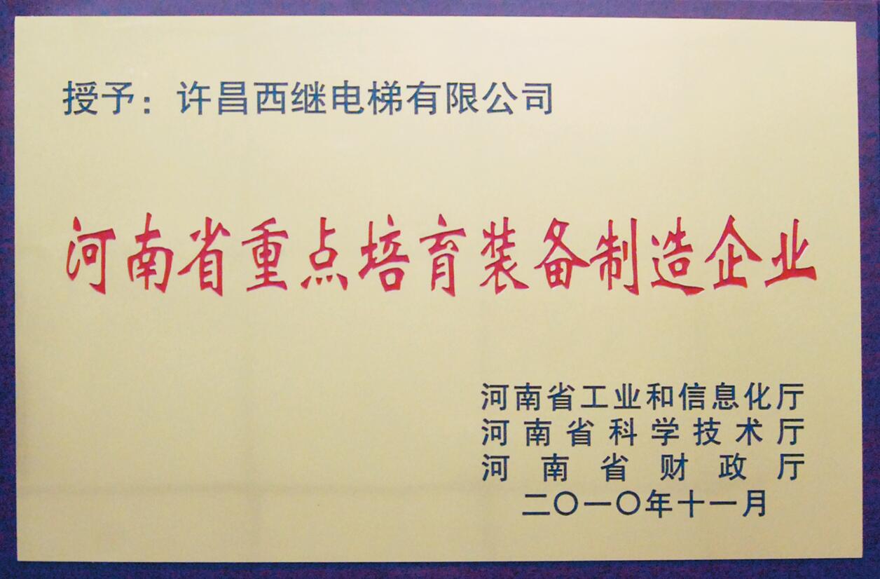 公司獲評河南省重點培育裝備制造企業