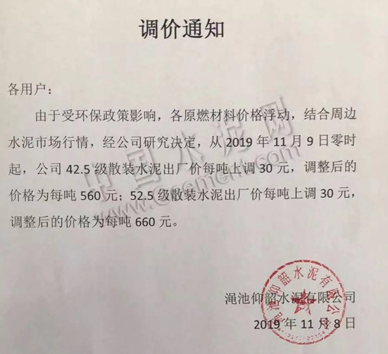 水泥漲價最新消息2019:近期河南地區(qū)環(huán)保管控,生產(chǎn)受限,加之區(qū)域2019年冬季錯峰生產(chǎn)在即,市場供應(yīng)緊張。據(jù)中國水泥網(wǎng)了解,河南區(qū)72條熟料線,截止11月7日...